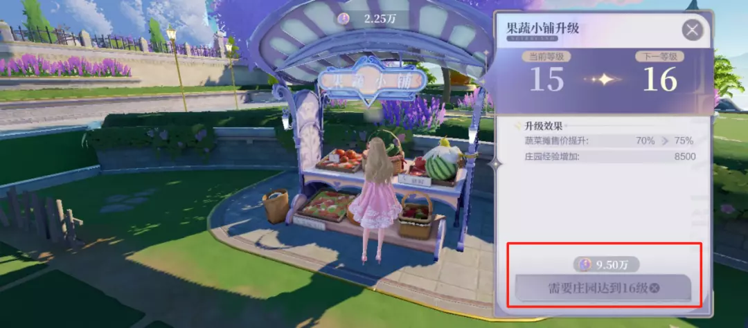 庄园升级需要庄园经验、庄园币都满足条件。可以根据实际的缺口去种植常规或高庄园币的农作物,常规作物的庄园经验更多,高庄园币农作物的庄园币更多。当庄园经验满但庄园币不足时也不用太过焦虑,此时的庄园经验会持续累计,仍然可以正常获取。
