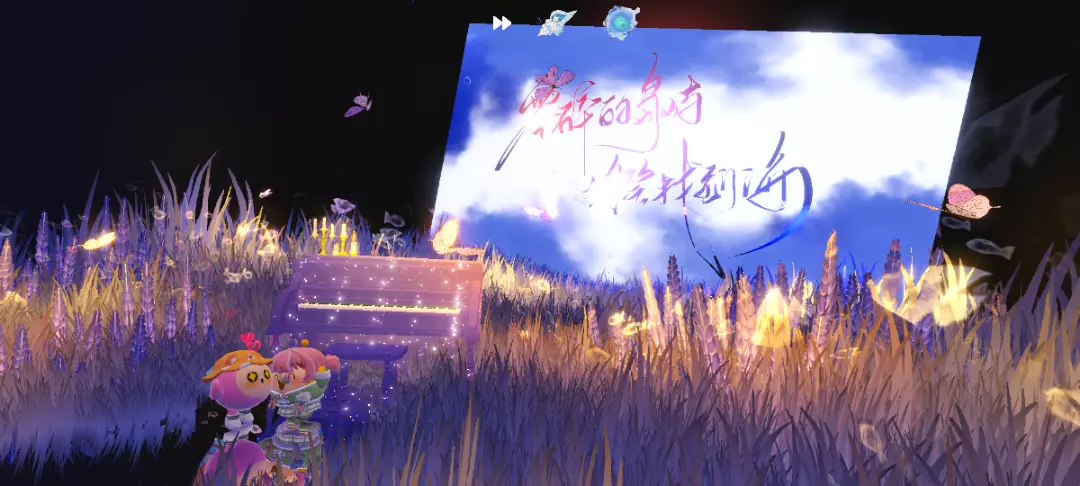 非常的美丽哇,前边还有梦幻的透明小鱼和小蝴蝶,还有一个钢琴可以坐下呢,周围星光点点,简直是拍照圣地哇🎊