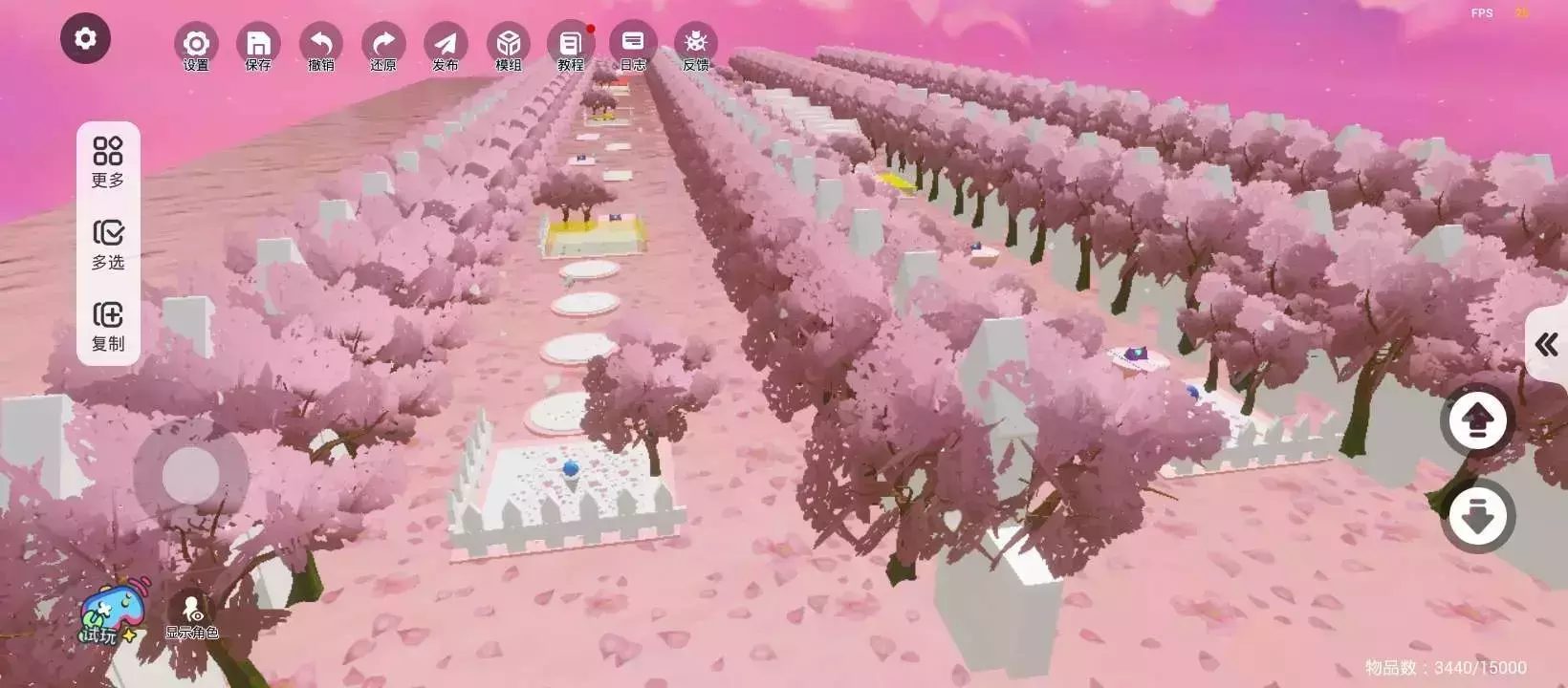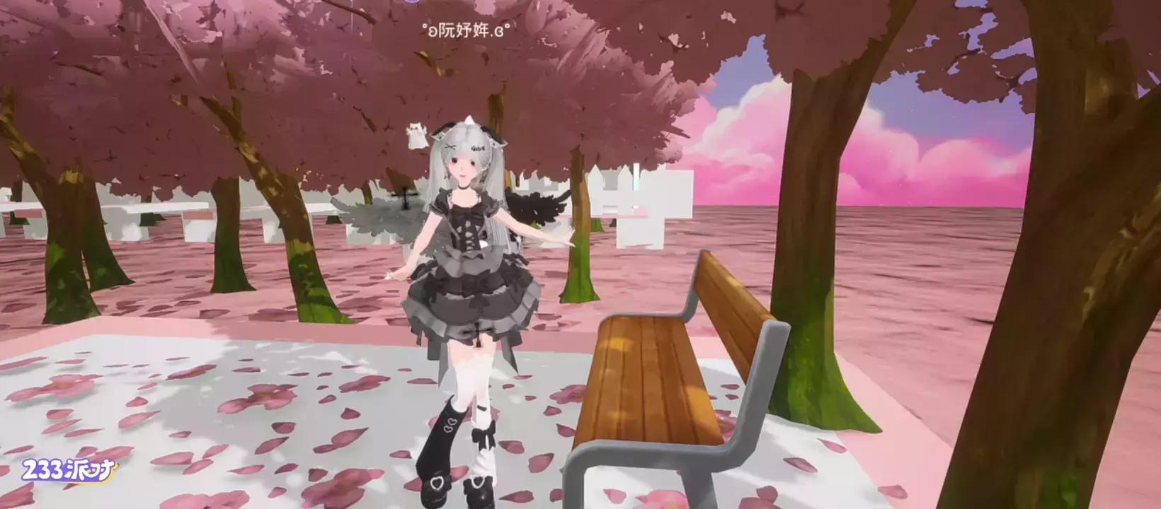 关卡周围是樱花树和围栏,不是很好看,喵