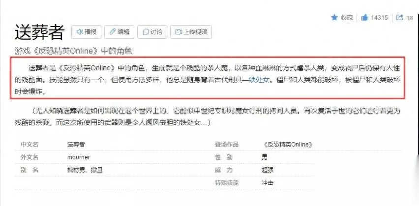 首先,我们可以看到百科里面,关于送葬者的一段话,是这么说的:生前就是个残酷的杀人魔,以各种血淋淋的方式虐杀人类,变成丧尸后仍保有人性残酷的一面。技能虽然只有一个,但使用方法多样,他总是随身背着古代刑具—铁处女。僵尸和人类都能破坏,被僵尸和人类破坏时会爆炸。从这段话中,可以看出来,送葬者早年应该是个杀人犯。