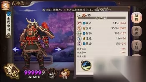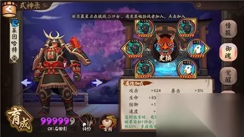 这个兵俑的属性面板给大家参考。 说完了前提,我们来看看兵俑有哪些御魂的选择。 御魂选择一:
