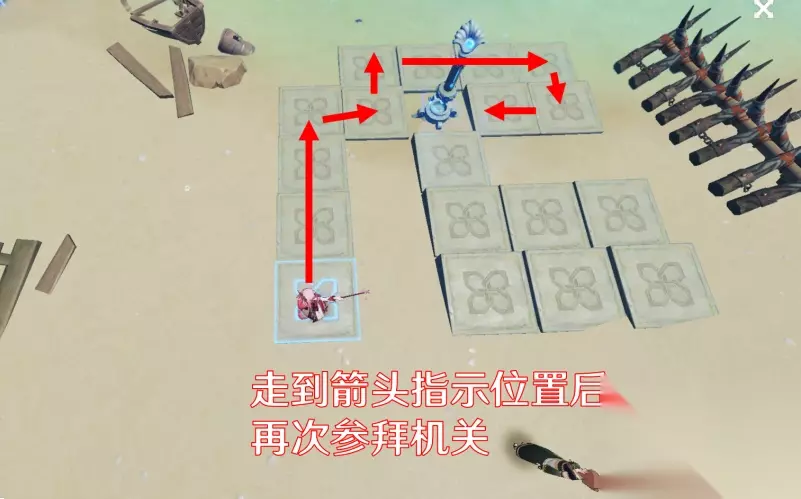 然后沿着下图的路线走,这样就可以完成解谜获得宝箱。