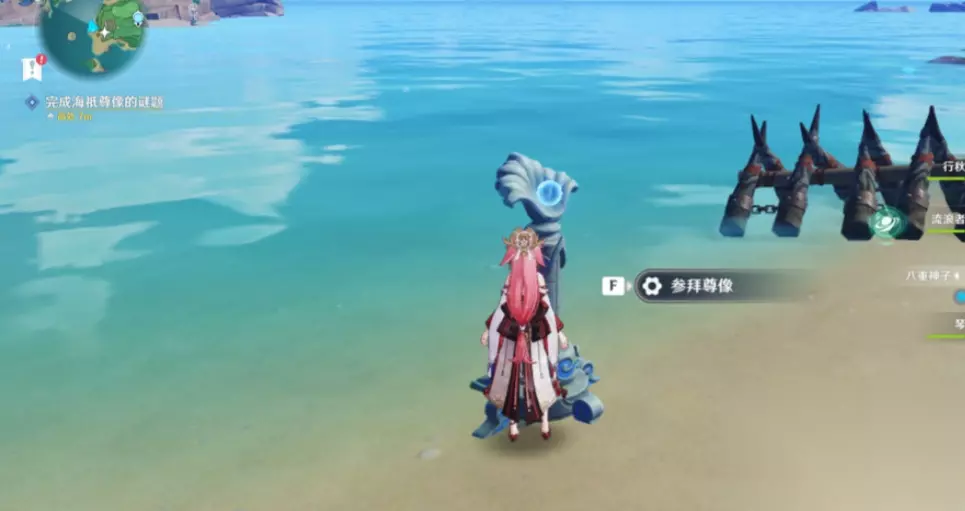 元素方碑激活后,海只尊象会出现在海边,我们点击参拜;