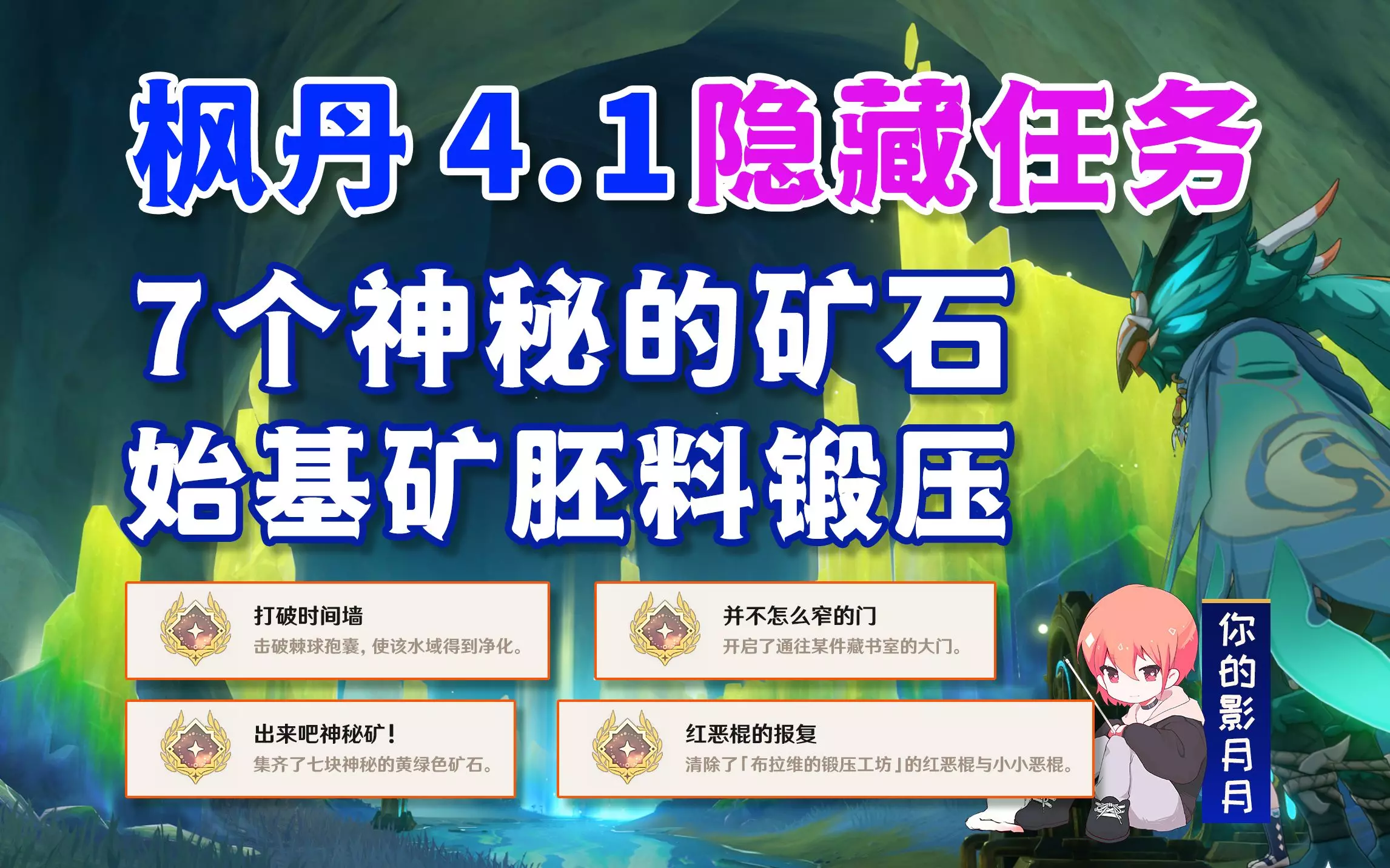 2、枫丹动能工程科学研究院区【11-20】,收集时需要注意有一个在地下,收集7个矿合成钥匙即可开门。