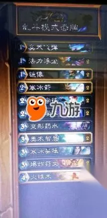 1-低费法术养浮龙 2-学徒配合火球术,寒冰箭 卡组重大更新 去掉了华而不实的蒸发,加入两张爆炸符文和两张秘法学家,另减少了一张奥术飞弹