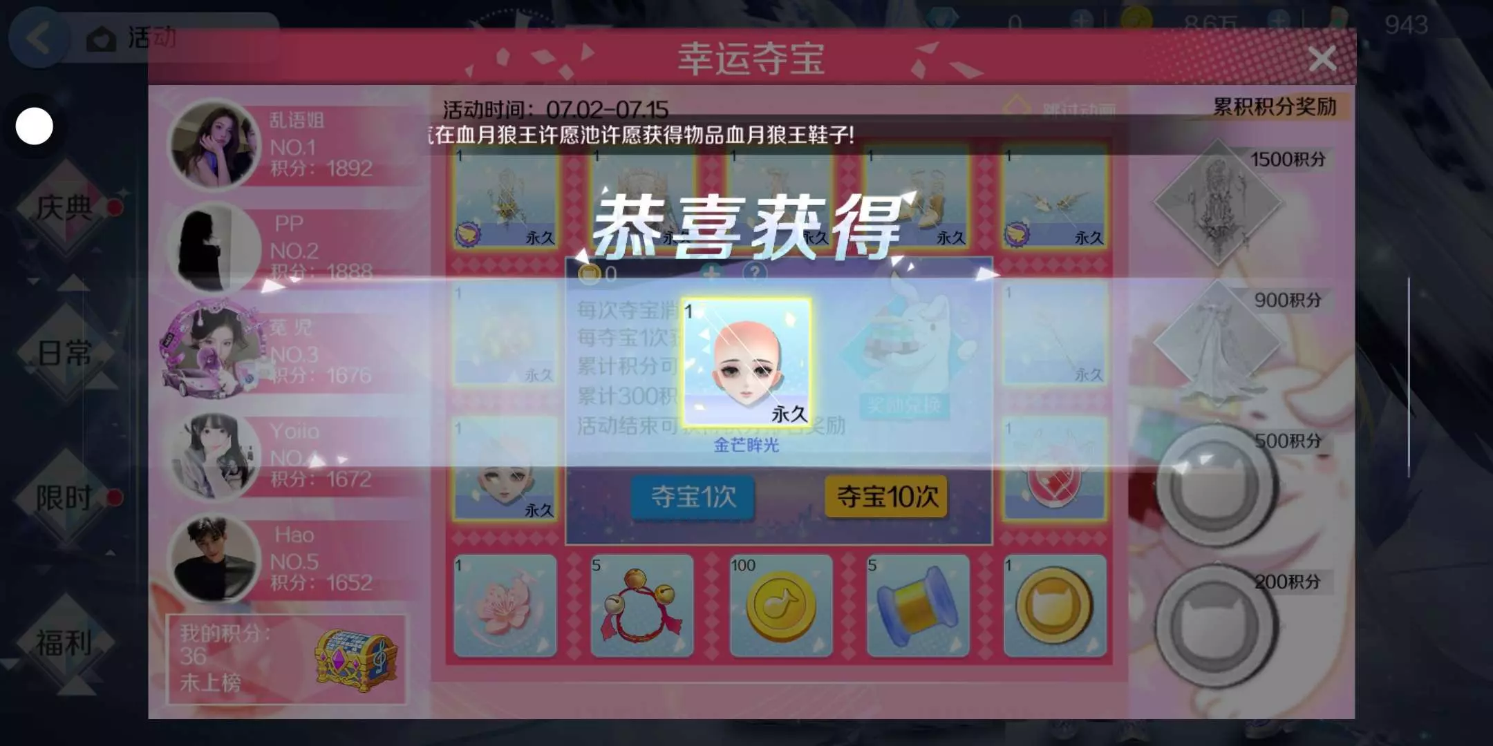 嗯,对,抽到了想要的徽章和头发