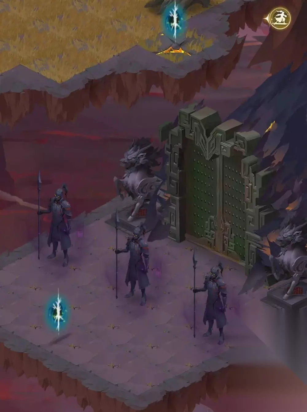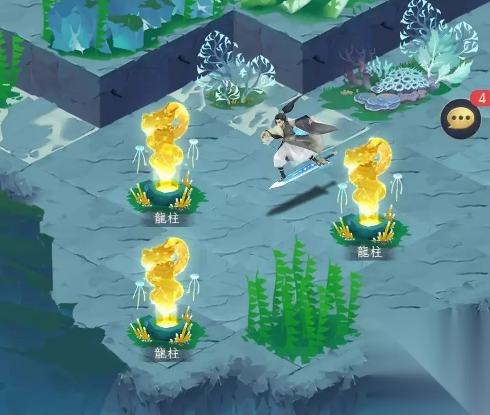 在这里还有个隐藏奖,分别是火碑和水碑,每个碑能得到20妖灵精魄和40宝石祭练石。 火碑传送阵走法:震→震→震→震→兑;水碑传送阵走法:震→震→震→震→坎。 第五章有3个龙柱需要激活,具体见下图: