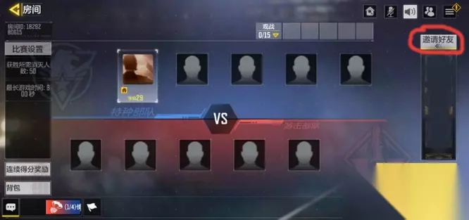 3、进入房间里面,点击右侧邀请好友,给好友发送组队邀请,等人满后就可以开启战斗了。