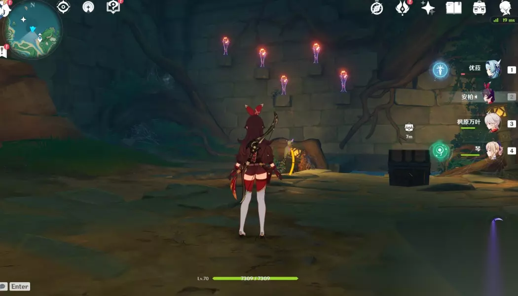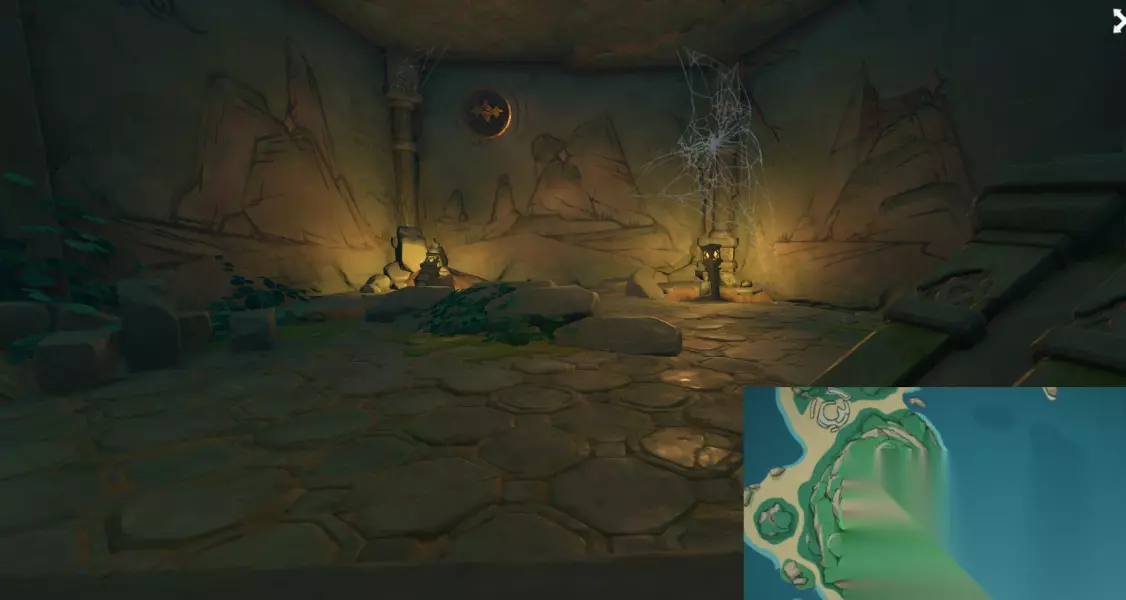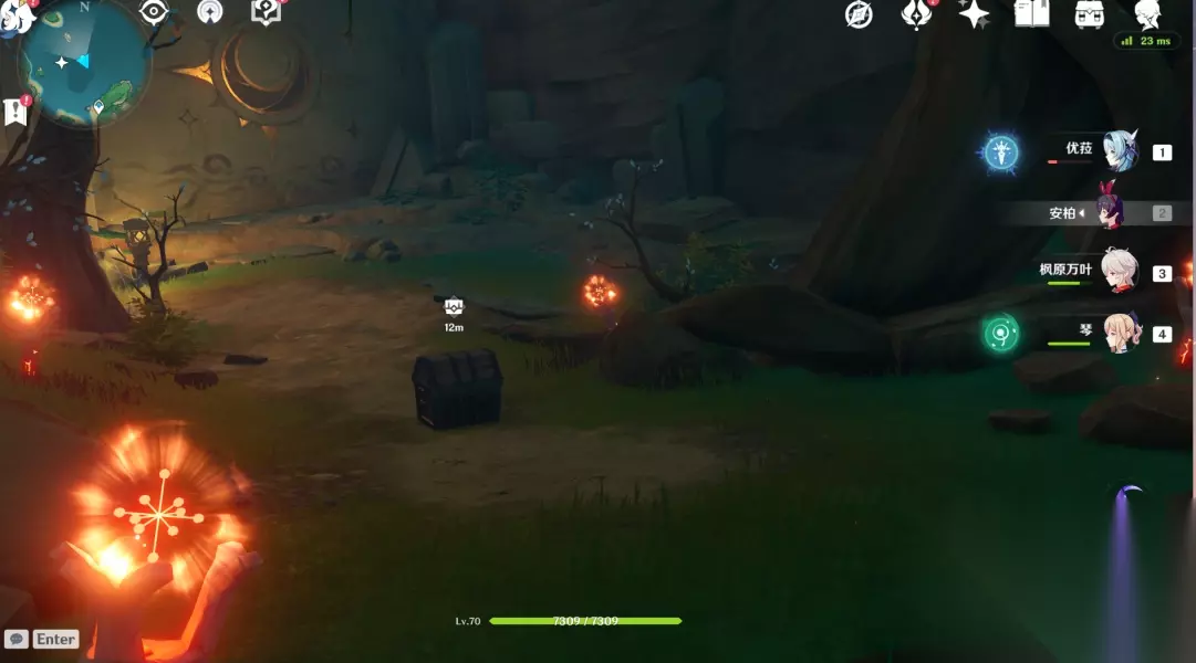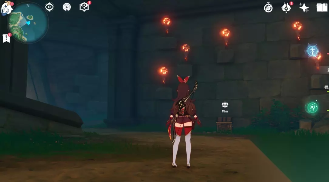 点亮这个视角内左上,左下,右下的火把,拿到一个精致的宝箱