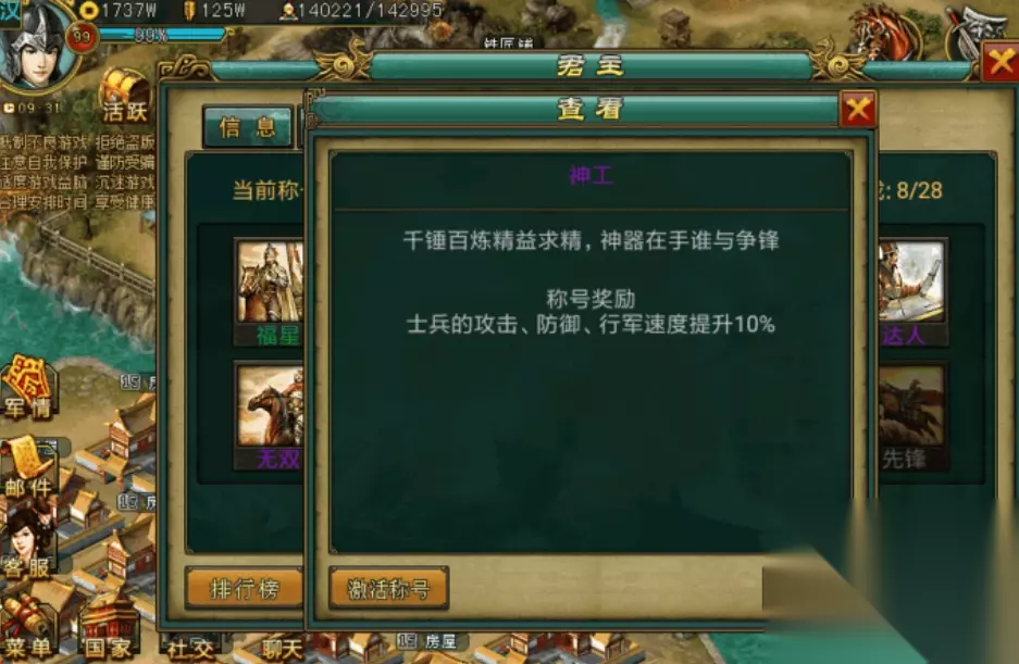 一般来说,橙色或红色品质的将领能力更强,但是对于资源有限的平民玩家,紫色品质的将领更加划算。因此在资源紧张的时候,可以先培养一些紫色将领至满级,待资源充裕再考虑更换高品质将领。 攻击、防御和兵力都是衡量将领的重要指标,平民玩家在选择将领时,一定要考虑基础属性的平衡,避免单一属性过于突出而忽视了其他方面。 每个将领都有独特的技能,这些技能在战斗中扮演着重要角色。例如一些将领能有效提升兵种属性,或者在战斗中释放大范围伤害等等。平民王者应结合自身兵种与战术选择适合技能的将领。 《帝王三国》中有一些性价比极高的将领,他们在技能和属性上并不逊色于红色品质的将领,却更容易获取和培养。 作为一个紫色谋士,左慈的技巧性极强,其主动技能可以给敌人造成巨大的法术伤害,且释放机率相当高。 貂蝉作为一个紫色谋士,拥有着不俗的控场能力,她在后期获得的群体沉默技能,在对抗其他玩家时尤其有效。