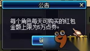 点击公会红包时,系统提示:每个角色每天可购买的红包金额上限为5万点卷。