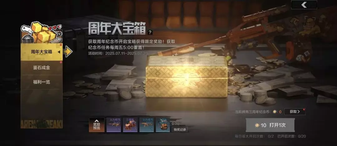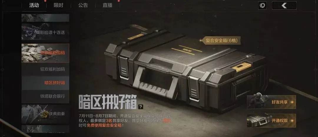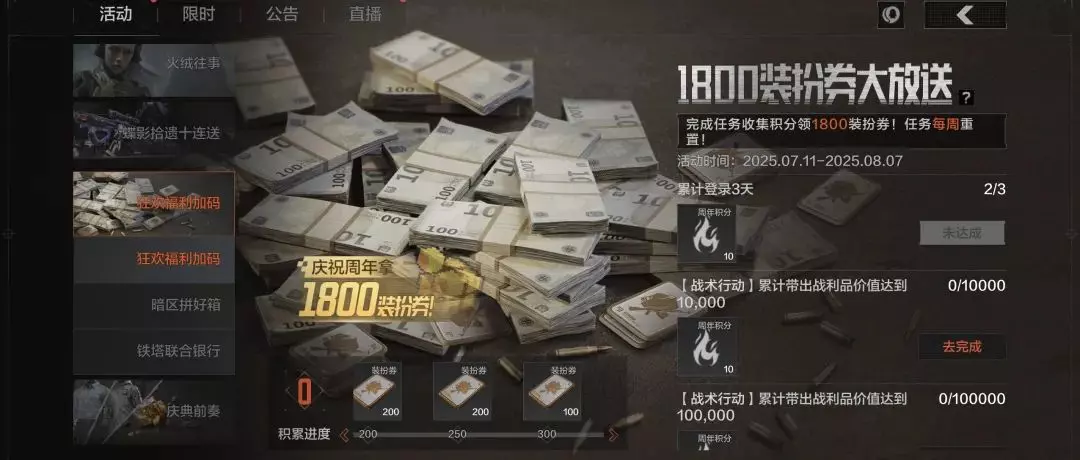 《暗区突围》周年庆7月11日开启!1800装扮券送不停,套装二选一,宝箱开周年限定,还有“拼好箱”助力各位先锋一起肥肥撤离!明天上线后,先锋们记得上线领取活动奖励!