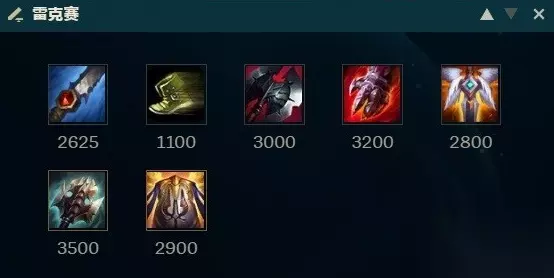 蜘蛛需要通过各种不同角度的GANK来帮助队友建议优势,在拿到更多人头之后快速叠加装备,然后不断地寻找可以单人刺杀对方核心的机会,以WEQ起手转蜘蛛形态的Q斩杀,一套爆发伤害在中后期对于脆皮来说是一个毁灭性的打击。 打野:丛刃雷克赛雷克赛 作为上几个版本的打野霸主,在这个版本中重新回归,只不过这次的雷克赛在韩服的主要打法,是以丛刃为基石符文的流派。 符文出装