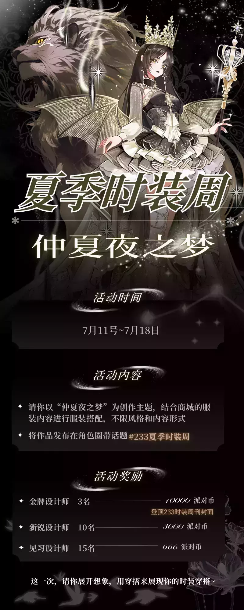 亲爱的各位穿搭师,我们的夏季时装周即将启动啦!本次的季节穿搭主题是“仲夏夜之梦”!