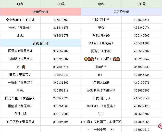 新锐设计师 10名 3000派对币