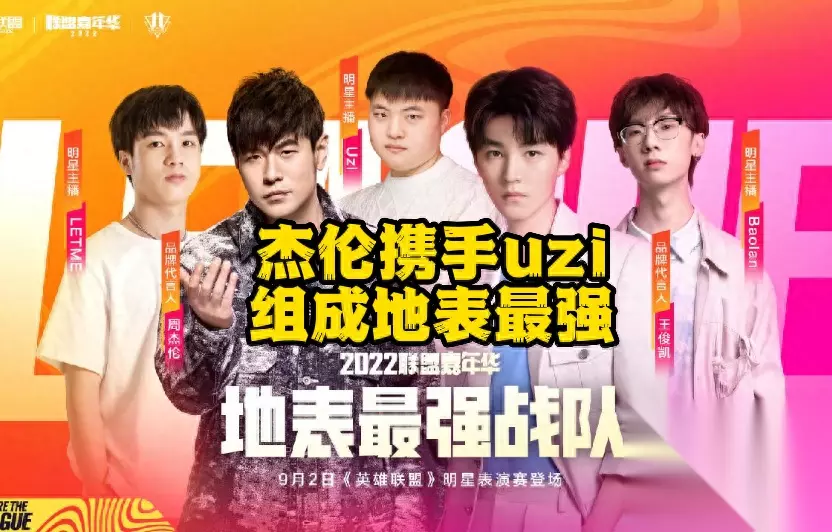 地表最强战队猪狗合作 地表最强战队可以说是牌面直接拉满,直接请到了杰伦哥和王俊凯,同时还有三位职业选手:RNG的Letme、Uzi与IG的baolan。相信大家只要是关注过以前杰伦哥表现的朋友,都会对位置分配一目了然,Letme自然是上单,Uzi与baolan则是组成下路双人组。