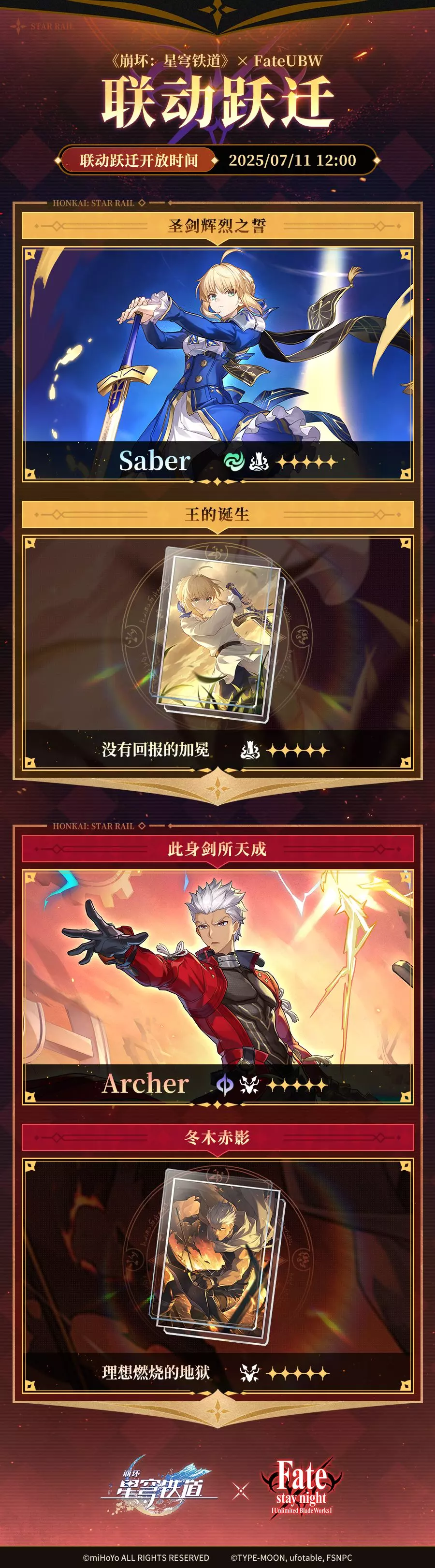 本期《崩坏:星穹铁道》× Fate[UBW] | 联动跃迁将于 2025/07/11 12:00 后长期开放。