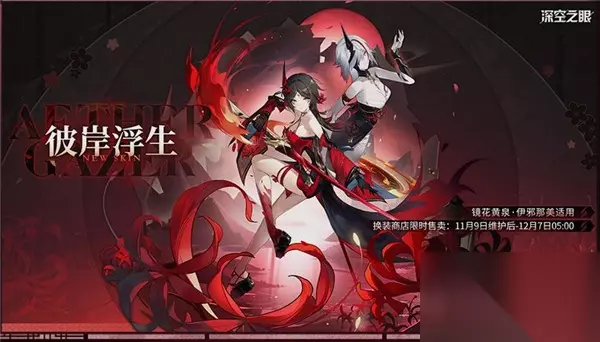 换装商店限时售卖: 11月9日维护后-12月7日05:00 镜花黄泉·伊邪那美全新换装「彼岸浮生」现已登场! 鸦越家举行家族祭典时的礼仪服饰,独属于伊邪那美。 在母亲的帮助下将绘着彼岸与火焰的衣衫穿在身上时,年轻的她尚且不知,死亡一词将永远缠绕余生 深灰色的长发飘逸柔顺,发尾染上一抹渐变的红,象征着火焰的头饰别于发间,额间及双颊用红色描绘纹样,令少女如同黑暗中的燃烧的烈焰,散发着不容侵犯的气势。 裙身以红黑配色为主,脖颈处点缀金属装饰,服饰上的暗纹以金箔描绘,神秘又不失矜贵。胸口及两袖的设计使用了盛开于冥界的彼岸花元素,传闻此花为接引之花,指引亡灵走向轮回。彼时身着华服的少女尚且不知,死亡一词将伴随她的余生。心 两胯的细绳处悬挂着小巧精致的禁步,行动时响起清脆的叮当声,犹如冥府使者发出的信号。由浅及深的火焰纹身缠绕在少女的右腿,脚上穿着具有笆波特色的木屐,身后长长的裙摆化为一缕火焰,炙热而又危险。 好了,以上就是深空之眼伊邪那美皮肤彼岸浮生怎么获取的全部内容,希望能够帮助到有需要的用户,想要获取更多相关精彩资讯请持续关注本站。