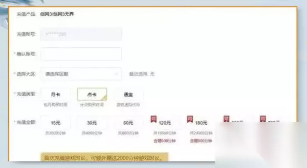 点卡模式详解: 点卡收费是专为点卡区玩家设计的,其收费标准如下: 点卡同样提供15元、30元、60元三个不同档次,分别对应2000分钟、4000分钟和8000分钟的游玩时间。此外,还有首次充值时长,可额外赠送2000分钟的福利。 在额外赠送方面,还有以下优惠:120元可赠送600分钟、180元赠送900分钟、360元赠送1800分钟,以及720元赠送3600分钟的游玩时间。 点卡采用分钟计费方式,确保精准计费,玩家不上线则不会消耗时间。因此,对于那些每天有大量游玩时间的玩家来说,点卡模式可能并不经济划算。 综上所述,点卡模式最适合那些工作、学习繁忙,没有足够在线时间的玩家。