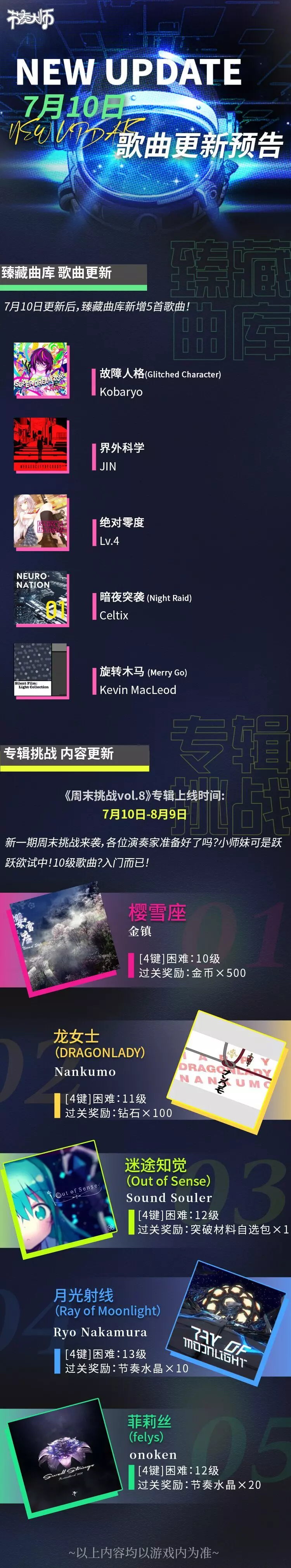 更新预告 | 7月10日歌曲更新内容