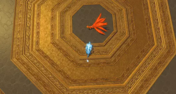 狴犴连续跳跃,每次跳跃都留下一个雷电锚点,从锚点中伸出雷电锁链链接所有锚点形成一个正五边形牢狱困锁敌人