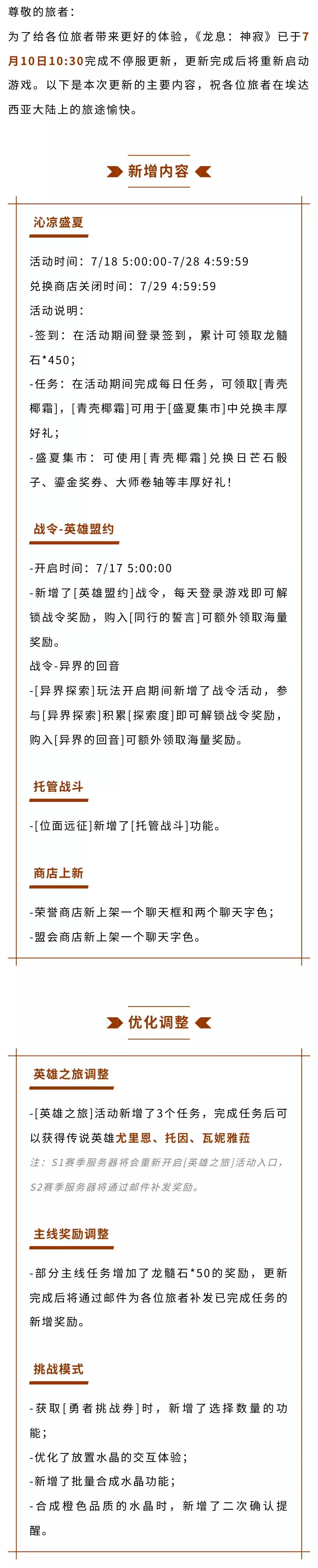 《龙息:神寂》7月10日更新公告