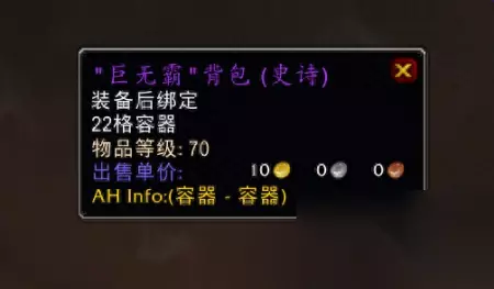 巨无霸背包还有一个特别的作用,是玩家转服时的硬通货。玩家在角色转服的时候不能携带太多金币,所以玩家需要把金币换成物品,等转服以后再把物品换成金币,这样等于变相把金币一块转服。而TBC版本比较稳定的物品当属巨无霸背包,因此只要是玩家转服,必然会把身上的金币换成巨无霸背包,实现金币转移。