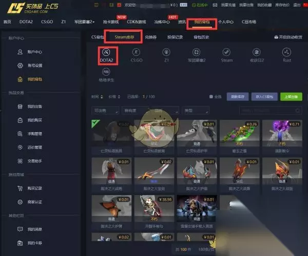 4、绑定完毕后,打开我的背包--steam库存--DOTA2