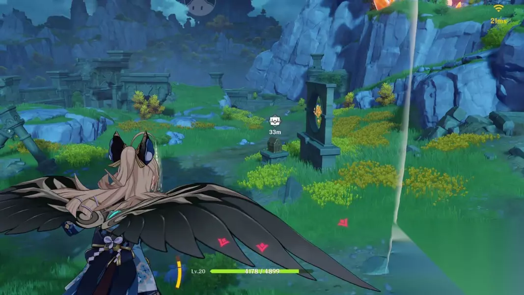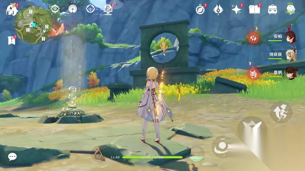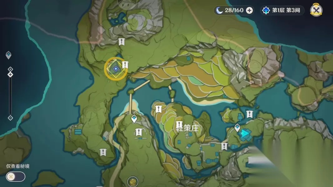第三个碎片位于图中标点(山上) 可以传送锚点出来之后往右后方走,一路爬上梯子,到了一个小房子那里后再爬山到山顶(推荐使用角色绮良良或魈爬山)