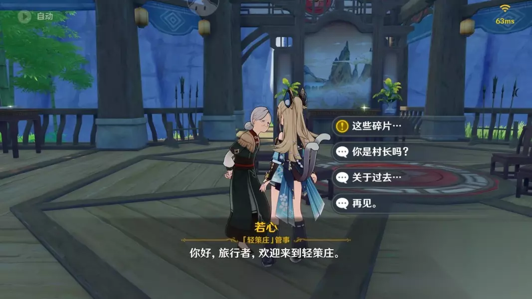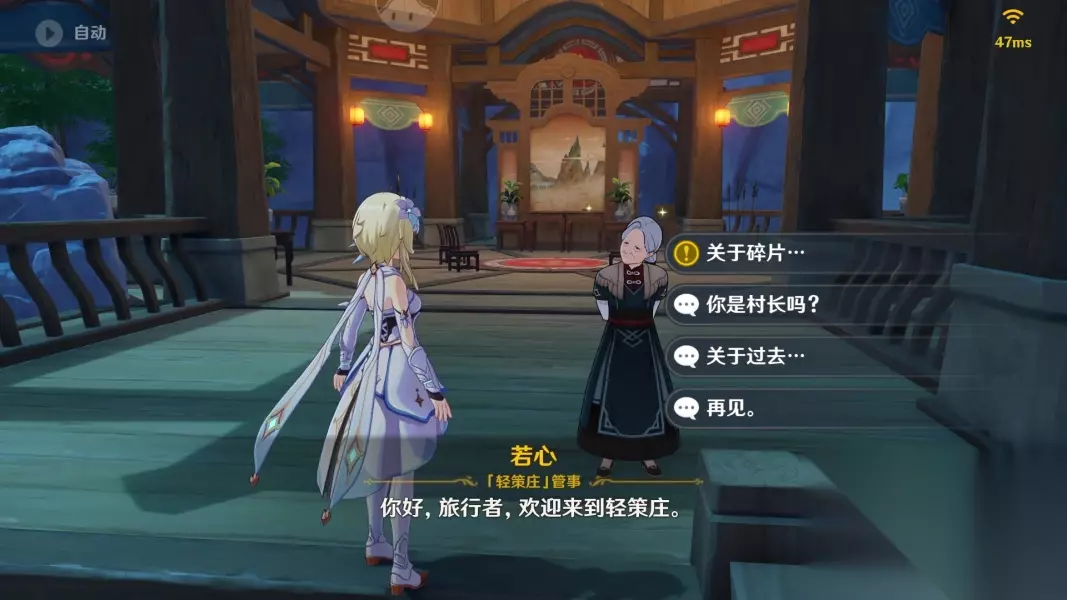选择“关于碎片”她不知道,会叫我们去问问npc若心 追踪任务并传送到若心所在位置,与若心对话