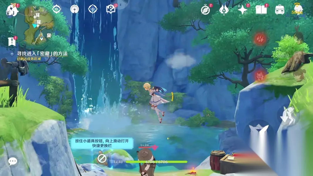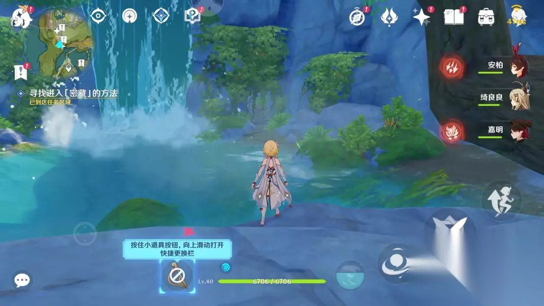 这里有个瀑布,瀑布右边有个洞口被植物覆盖了,进洞
