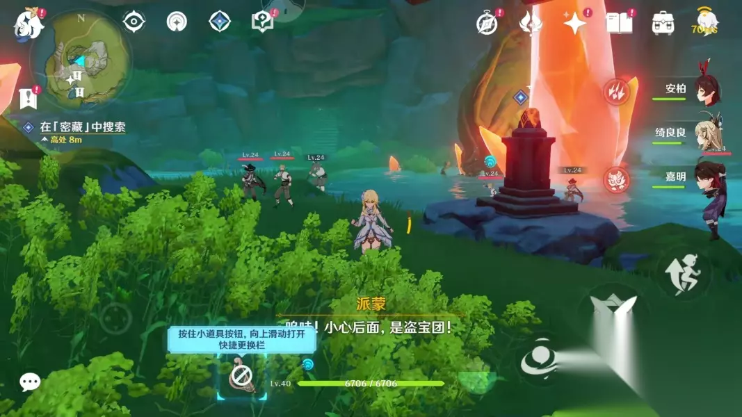 进去先击败盗宝团后再启动镇石 会打五个遗迹系列的怪物。先出来一个遗迹守卫,然后出来三个遗迹守卫,最后出来一个遗迹猎者
