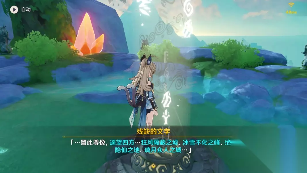这里有一个遗迹猎者和圆盘还有神瞳,将遗迹猎者击败后阅读圆盘
