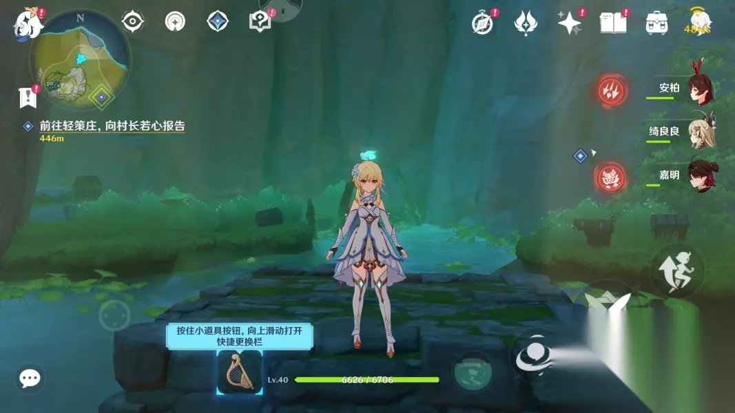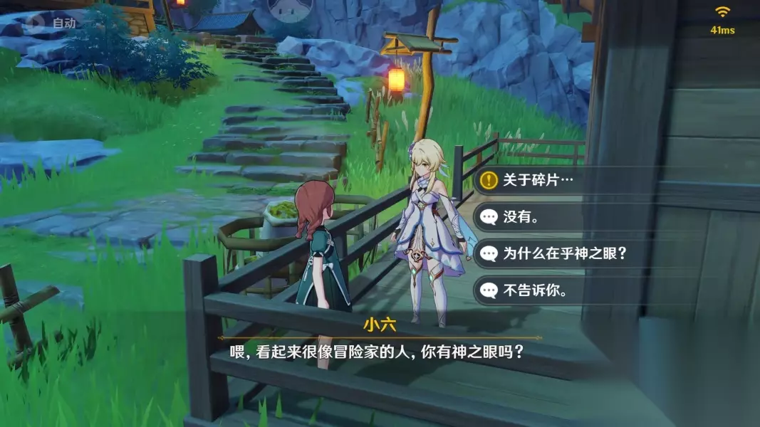 我们只需要来图中蓝色箭头位置,寻找到npc小六并与她对话