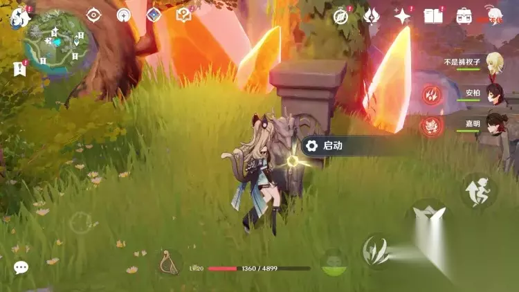叫我们去调查周围的石头。调整视角后发现,以下几个方向都有一颗树,树下都有类似于琥珀的橙色石头