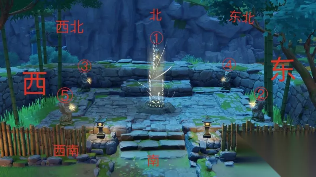 叫我们按照上图顺序启动岩尊像 遵从上北 下南 左西 右东 原则