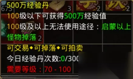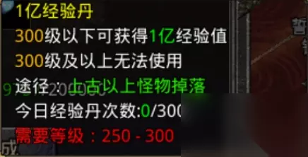 1亿经验丹,上古以上怪物掉落,10个5000万经验丹合成1个1亿经验丹