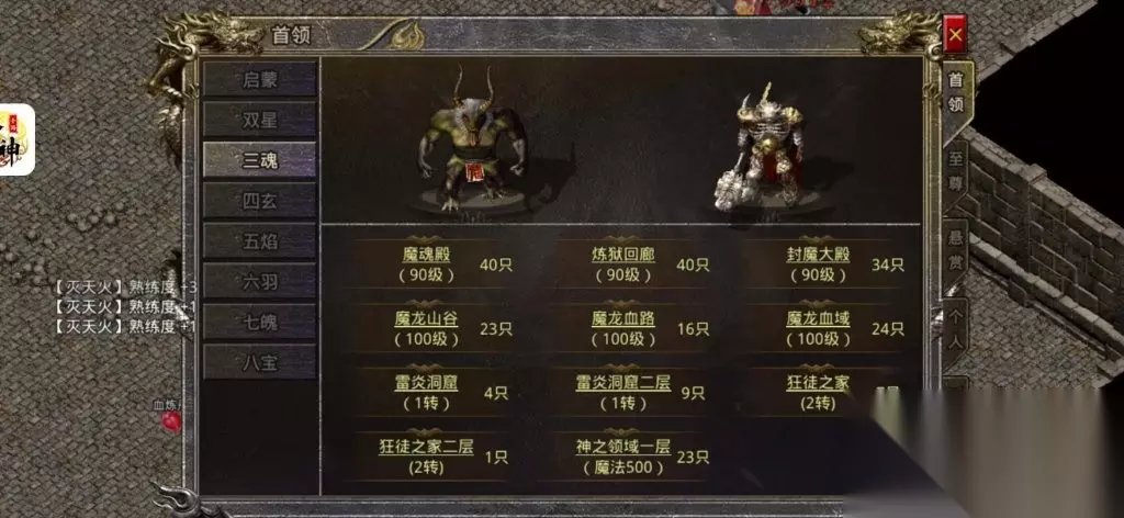 封魔大殿可以说是刷元宝非常快的地图了,这个地图一共分为三层,