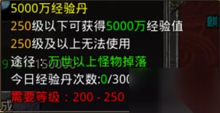5000万经验丹,万世以上怪物掉落,20个2500万经验丹合成一个5000万经验丹