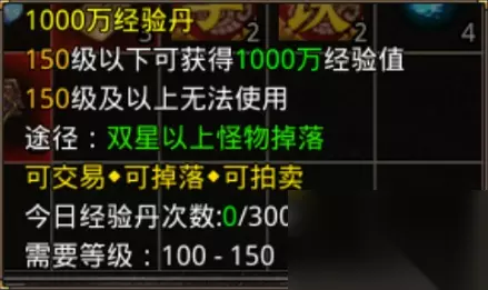 1000万经验丹,双星以上怪物掉落,30个500万经验丹合成一个1000万经验丹