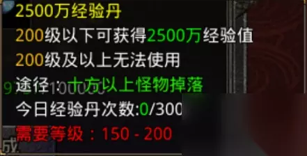 2500万经验丹 ,十方以上怪物掉落,25个1000万经验丹合成一个2500万经验丹