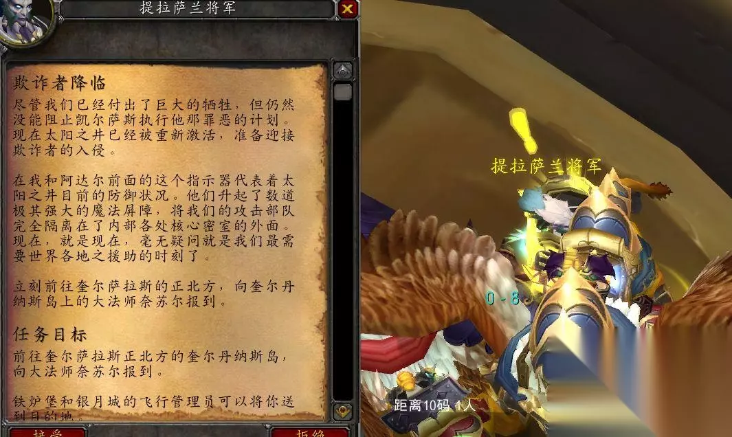 从今天开始,TBC怀旧服第五阶段“决战太阳井”正式开启,目前在游戏内除了太阳之井高地团队副本之外,其他都已经更新完毕,玩家上线就可以看到新版本更新的内容。今天小O就带大家来看看新版本都需要注意些什么。 新五人本魔导师平台 首先在游戏中开放了新地图奎尔丹纳斯岛,要前往奎尔丹纳斯岛非常简单,首先需要到沙塔斯中心的地方找到提拉萨兰将军,接受一个新任务,叫做“欺诈者降临”。接了任务之后就可以直接激活前往奎尔丹纳斯岛的飞行航线,联盟从铁炉堡触发,而部落则是从银月城出发。