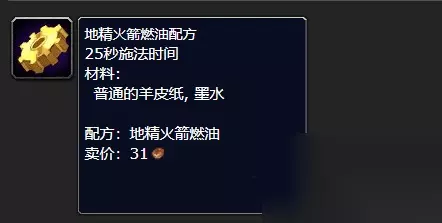 5、学习完图纸后,就可以制作地精火箭燃油,这是一种比较常用的道具。 6、燃油材料大概换算为,1火焰花+1朗姆酒=1地精火箭燃油,火焰花需要采药获取。