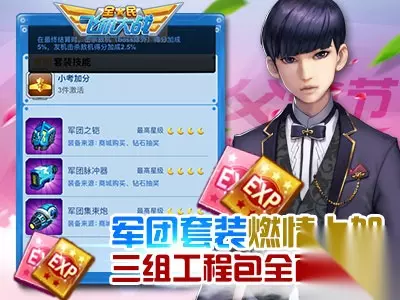 军团套装燃情上架 三组工程包全面助力 军团套装作为《全民飞机大战》中深受玩家喜爱的经典套装之一,拥有密集强袭的集束爆弹、稳定且强劲的回复能力以及可观的得分加成。6月17日至19日,军团套装限时上架,跃进军团装备满级时代! 军团集束炮上架仅售888钻石; 军团脉冲器上架仅售888钻石; 军团之铠上架仅售11888积分。 同期,游戏商城重磅上架可增加装备经验的重要道具“装备工程包”,让所有玩家都有机会将自己心仪的装备升至更高等级。 至尊工程包7折仅售2567积分; 特级工程包7折仅售1322积分; 高级工程包7折仅售272积分。