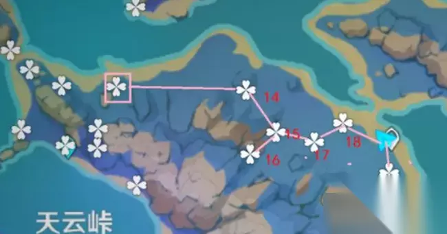 路线位置三:建议解锁传送点,然后再去采摘,接上图12号位置【14-19】