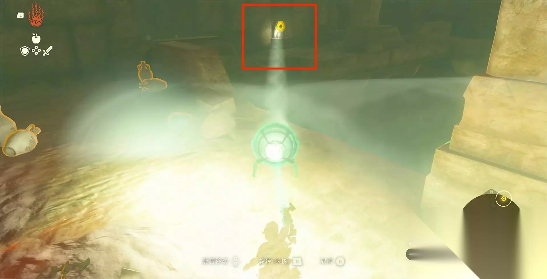 光照门二:接下来看向右侧,这里还有一个光照机关,用同样的方法触发即可。
