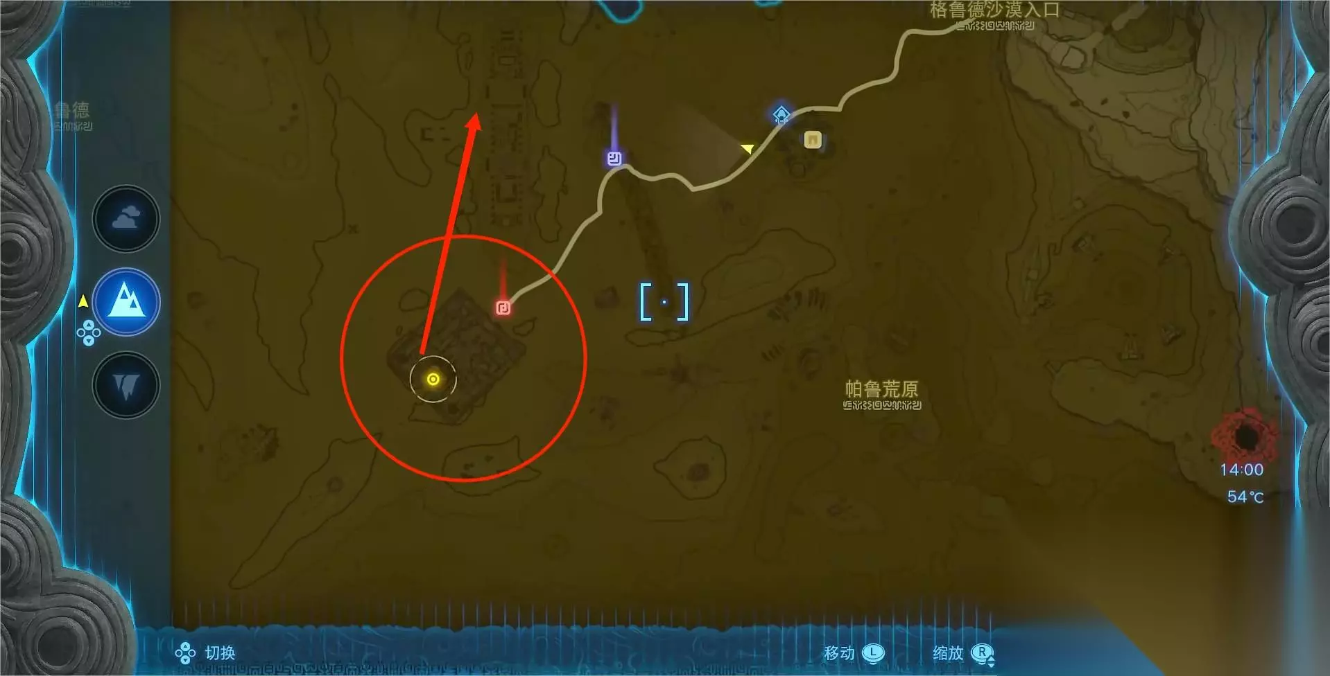具体位置:从地下洞窟中钻出来,就可以来到北部的遗迹,如图所示。