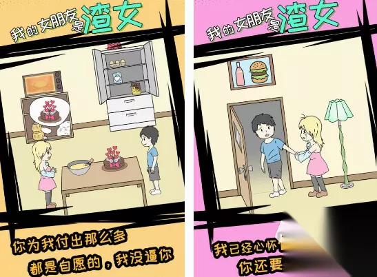 这款游戏相对于普通的恋爱模拟游戏,并不是以漂亮又温柔贤淑的女朋友为主,而是了解什么是渣女。除了里面的女性角色,会做出很多让男朋友伤心难过的事情,还会说出一些让人毁三观的话,整体的玩法非常的简单。你需要在面临女友所做的各种事情时,利用一些方法祈求对方,让她回心转意。还能通过点击寻找物品等方式,使用相应的物品。 高速下载 普通下载 5、《情侣》