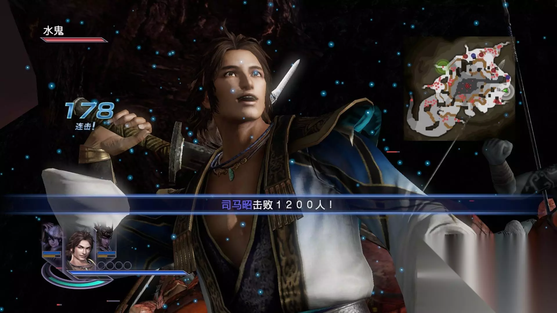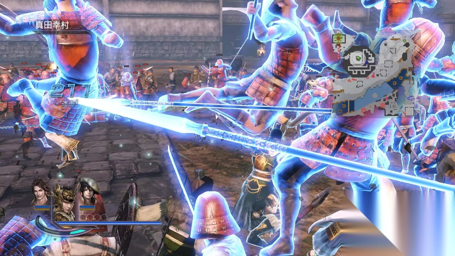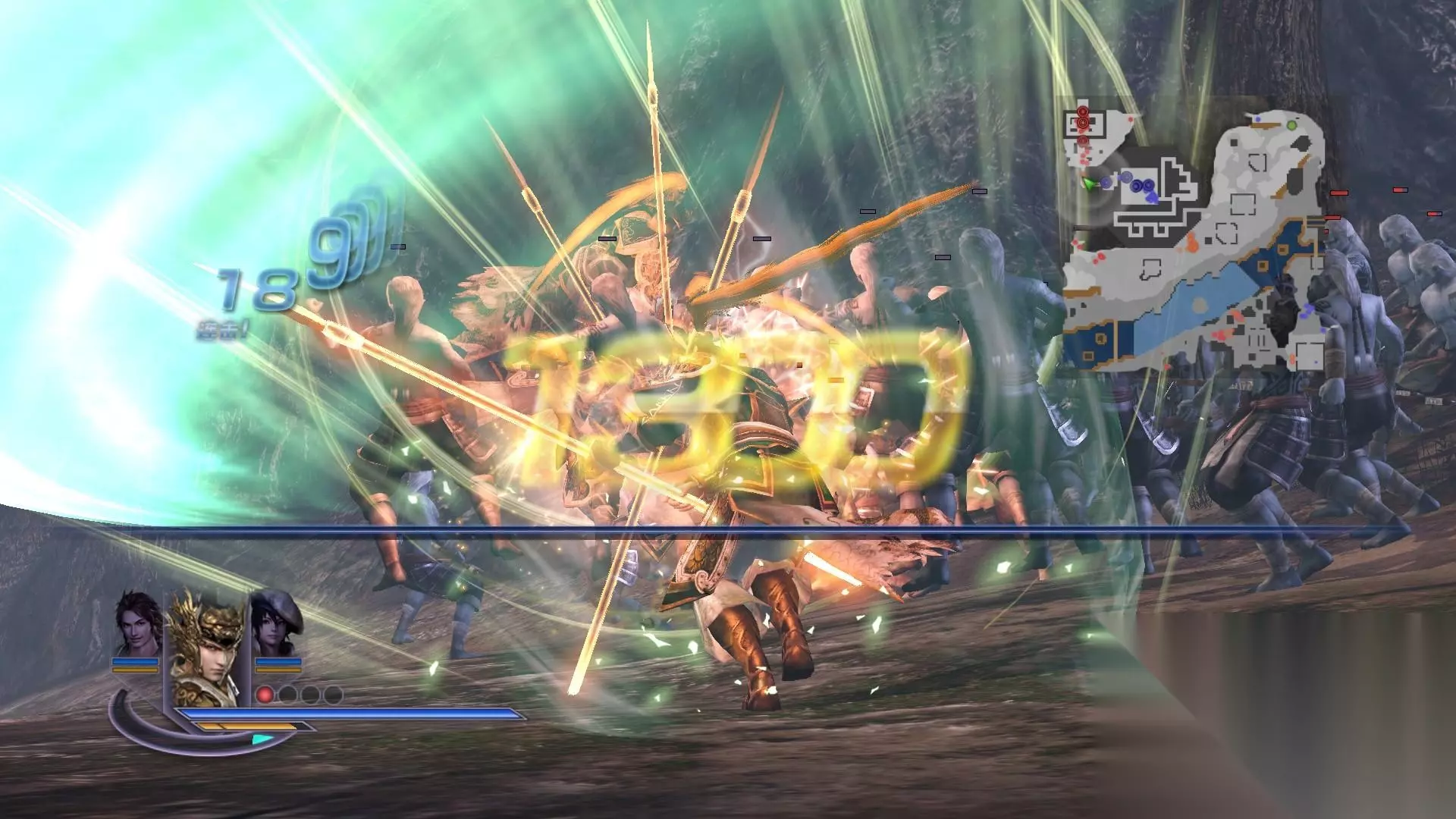 三人小队的组合战斗形式让战斗的爽快感不止提升了三倍。除了能量集满之后的“真·合体技”能让三人携手释放出成吨的伤害输出,切换连击、三重猛攻、援护攻击等多种合力作战的方式更是让玩家可以打出更具观赏性也更具威胁力的攻击:玩家通过在攻击时快速切换备战武将来实现招式连击,或是在蓄力攻击后让备战武将现身从而发动重击,抑或是在被敌方杂兵围困时通过切换备战武将触发援护效果将敌人震飞。这种三名武将组成小队进行作战的设定让玩家有足够多的手段来应付多变而凶险的战场环境,也让战斗体验更加具有操作性。