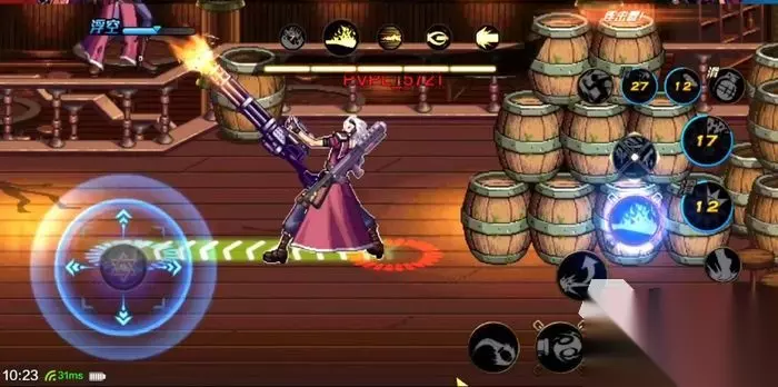 首先大家尽可能拉开距离,然后跟对面在同一个x轴的位置,此时利用激光炮以及反坦克炮进行消耗。然后也是同理不停的空中移动拖技能cd,干扰对面的耐心让其露出破绽,然后利用利用连招打输出。 手雷+BBQ+滑铲+回旋踢+浮空弹+反坦克炮+激光炮+榴弹炮 远程职业的话基本没有太强的近战能力,所以大家可以利用手雷可以y轴击飞敌人的效果,从而使用BBQ击飞敌人完成后续的连招,此时中间的回旋踢以及浮空弹大家也可以不加入进去,毕竟这个需要一定的手速以及时机把控。